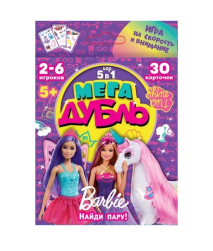 Карточная игра 5 в 1 'Мега дубль. Найди пару. Барби', 323227