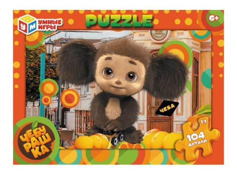 Пазл классический в коробке. 104 детали. 190х141х35 мм, 'Чебурашка', 373688