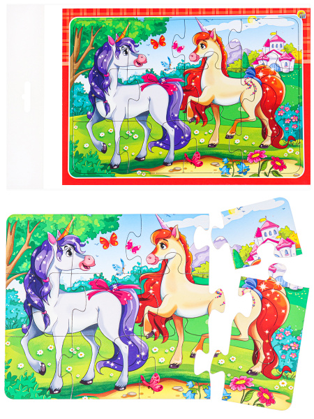 ПАЗЛ-РАМКА. 12 элементов. 15х21 см. Чудесные единороги №3 (Арт. П-3178)