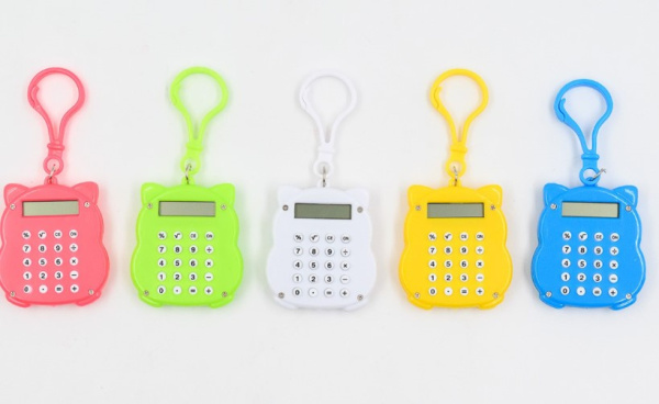—Калькулятор 8 разр.КОТ с монеткой, карабин, в асс, 823