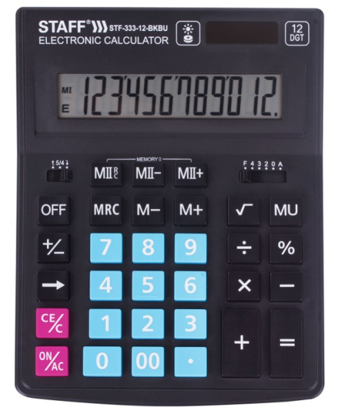 —Калькулятор настольный STAFF PLUS STF-333-BKBU (200х154 мм), 12 разрядов, ЧЕРНО-СИНИЙ, 250461