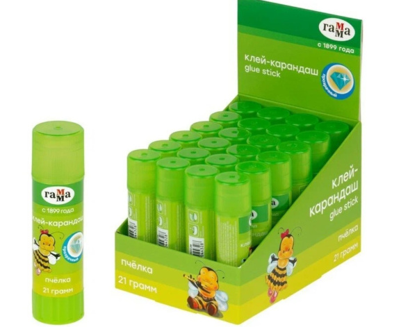 Клей-карандаш Гамма 'Пчелка', 21 г, прозрачный, ПВП, 1392022.21