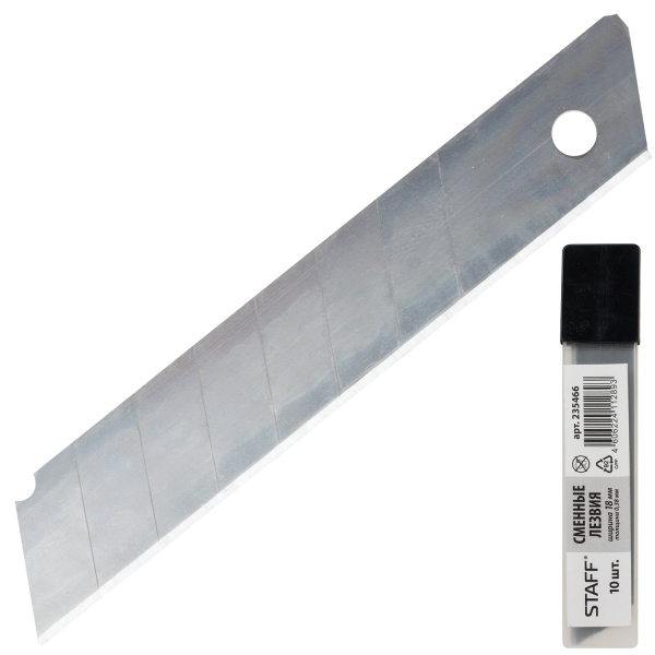 —Сменные лезвия для канцелярских ножей STAFF 18 мм (10 шт;уп), 235466