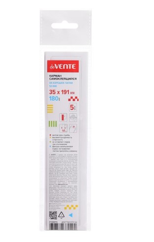 Карман самоклеящийся на корешок папки 50 мм 'deVENTE' 35x191 мм, ПВХ 180 мкм, прозрачный, 3122215