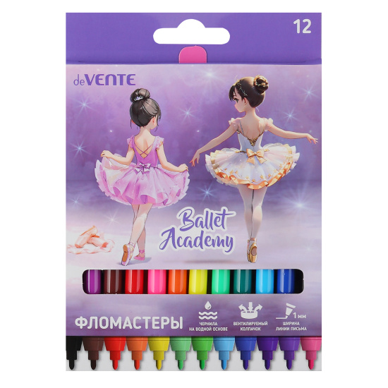 Фломастеры 'deVENTE. Ballet Academy' 12 цветов с вентилируемым колпачком, 5081534