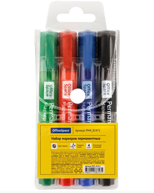 —Набор маркеров перманентных, OfficeSpace, 3 мм, (4 шт;уп), PV4_85471