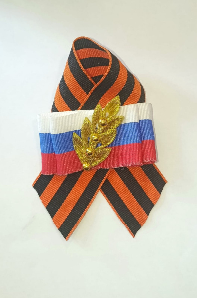 —Значок Брошь-3D 'Колосок золотой с бусинками' с георгиевской лентой, 2973