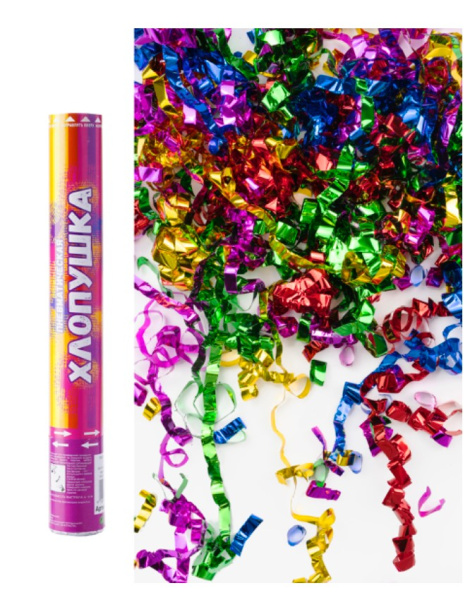 —Пневмохлопушка (12;30 см), Серпантин, фольга, ассорти, ST8830