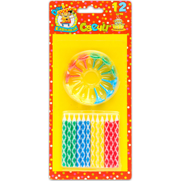 Свечи для торта с подставками 'Цветной узор', (12 шт;уп), европодвес, С-1227