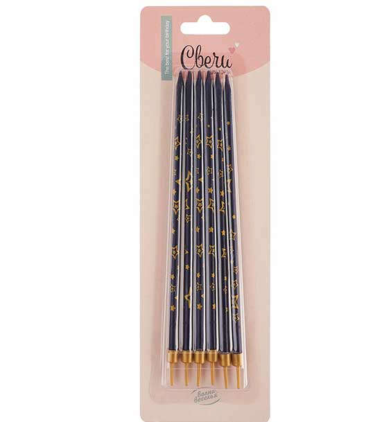 Свечи Золотые звезды, Черный, Металлик, 0,55~15 + 1 см, 6 шт. с держат., 627077