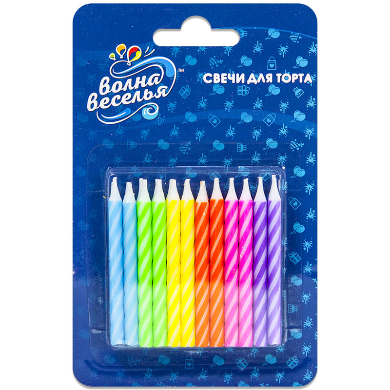—Свечи для торта Волна Веселья 'Цветные полоски' 6 см 24 шт, 102300