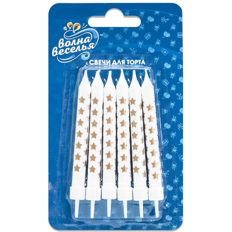 Свечи для торта 'Золотые звезды', Белый, 8 см, 6 шт.137166