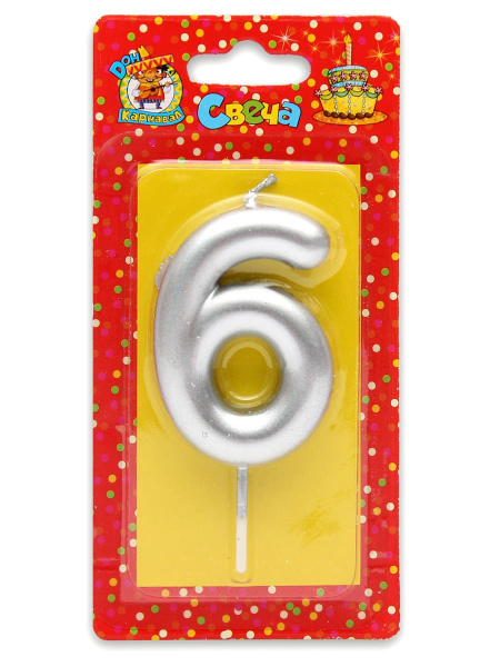 —Свеча для торта 'Цифра 6. Серебряная' Миленд, картон. уп., европодвес, С-1814