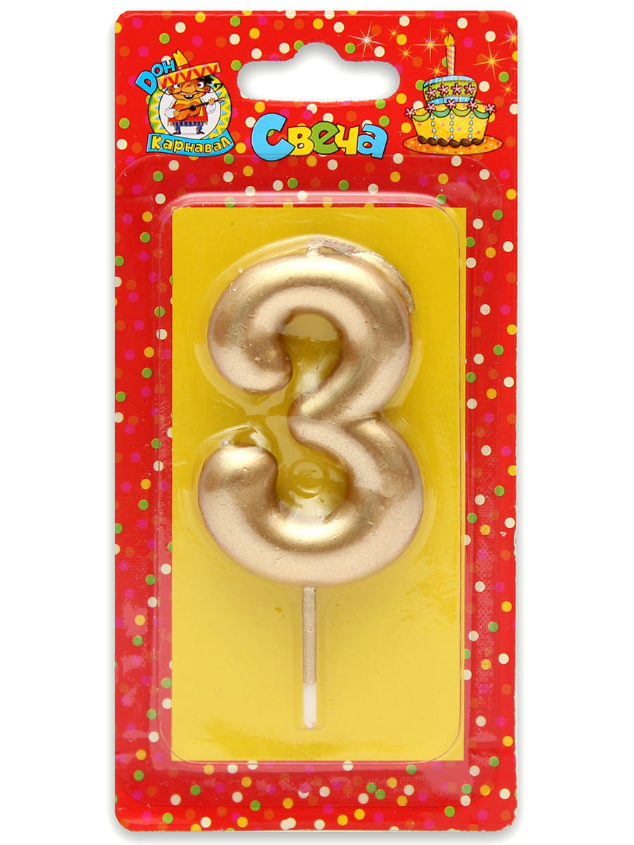 —Свеча для торта 'Цифра 3. Золотая' Миленд, картон. уп., европодвес, С-1801