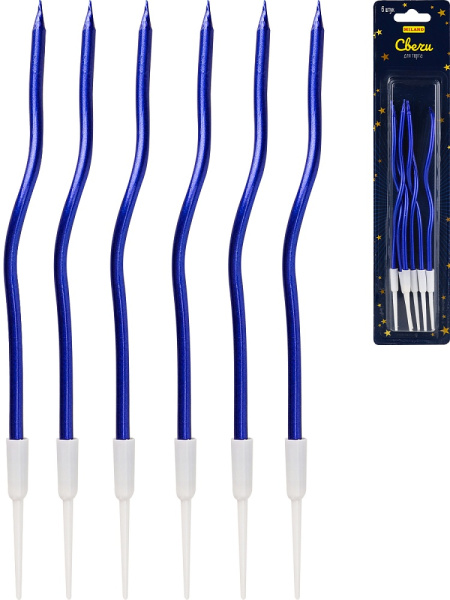 Свечи для торта на подставке 'Яркий блеск', 0,4х12 + 4 см, (6 шт), синие, С-2009