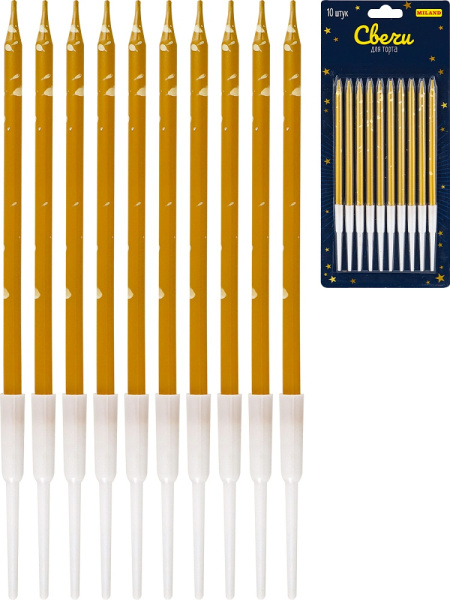 —Свечи для торта на подставке 'Праздничные всплеск', 0,4х10,5 + 4,5 см, (10 шт), золотистые, С-2047