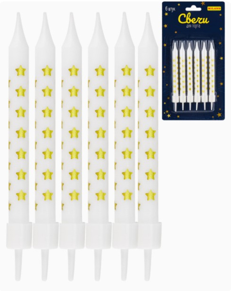 Свечи для торта на подставках'Золотистые звездочки'.0.7~7 +2 см. 6 шт. С-2014