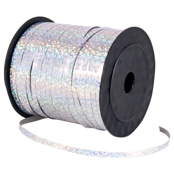 Лента подарочная голография 5 мм х 250 м серебряная , (1 шт;уп), SL-12