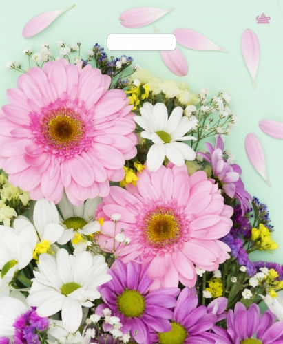 Пакет ПЭ с вырубной ручкой 38х45+6см (х50) (Нежные герберы), глянцевый, ВУР55249