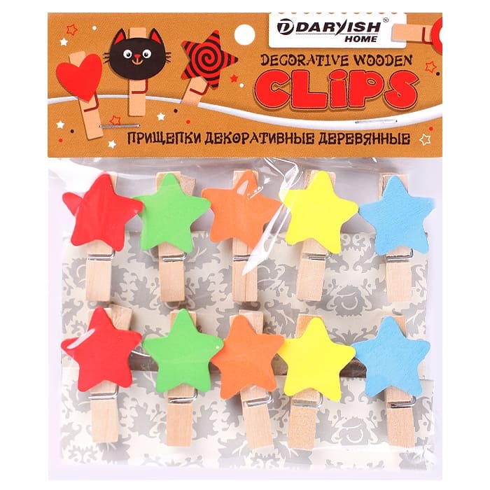 —Прищепки декоративные Darvish 'Звёздочка', дерево, 10 шт.;уп., DV-H-1080