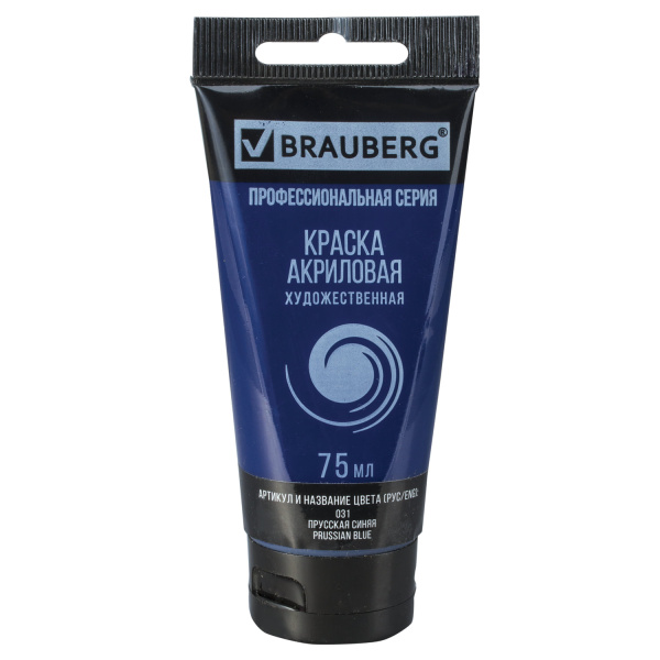 —Краска акриловая художественная BRAUBERG ART CLASSIC , туба 75 мл , ПРУССКАЯ СИНЯЯ, 191097
