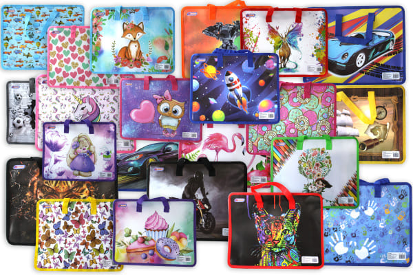 —Папка детская А4, с тканевой ручкой на молнии, пластиковая ассорти, AR-296P