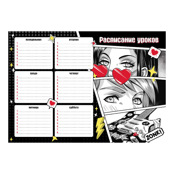 Расписание уроков А4, мелованный картон 235 г;м², полноцветная печать, выборочный УФ-лак, 67659
