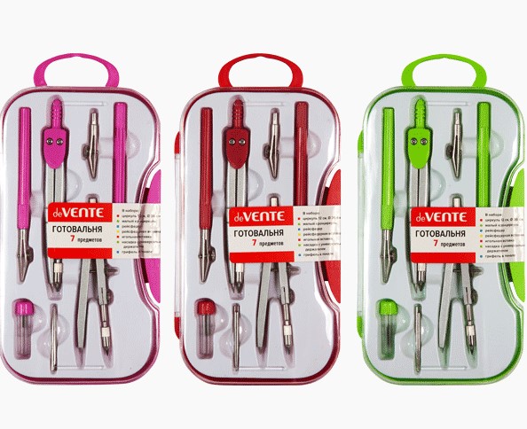 Готовальня школьная deVente (7 предм.), цветной корпус, 5093601