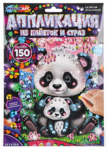 Аппликация из пайеток и страз, 17х23 см, Панды, МУЛЬТИ АРТ, 396012