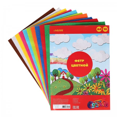 —Фетр цветной мягкий A4 'deVENTE. Яркие цвета' 10 цв, 10 л, толщина 2 мм, 8040757