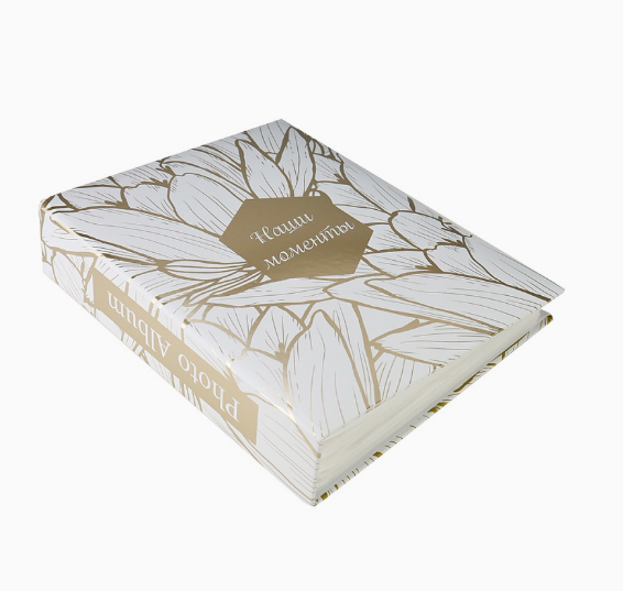 Фотоальбом на 200 фото 10х15, 50л.с фольг.тисн, Золотистые цветы, ФР-1284