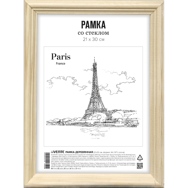 —Рамка из МДФ 'deVENTE' 21x30 см, формат A4, профиль N1, стекло, 9027014