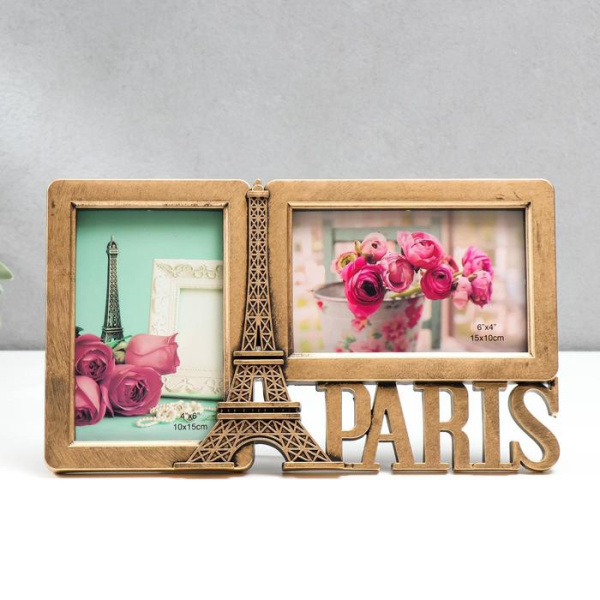 —Фоторамка пластик на 2 фото 'Эйфелева башня. Париж' (10х15 - 17х29,5х2см), темное золото, 5310559