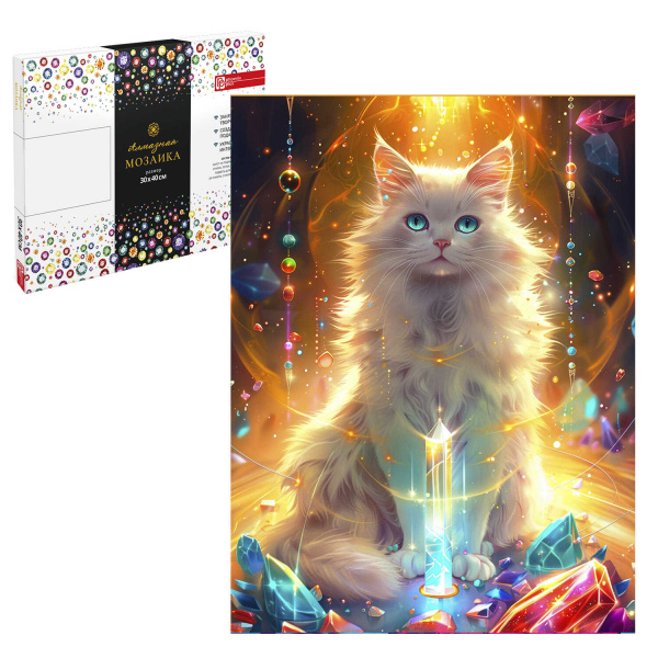Алмазная мозайка 30х40 см, Кот и самоцветы, Phoenix plus, 68637