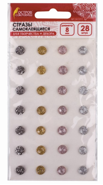 —Стразы самоклеящиеся 'Круглые', 8 мм , 28 шт , ассорти, 662233